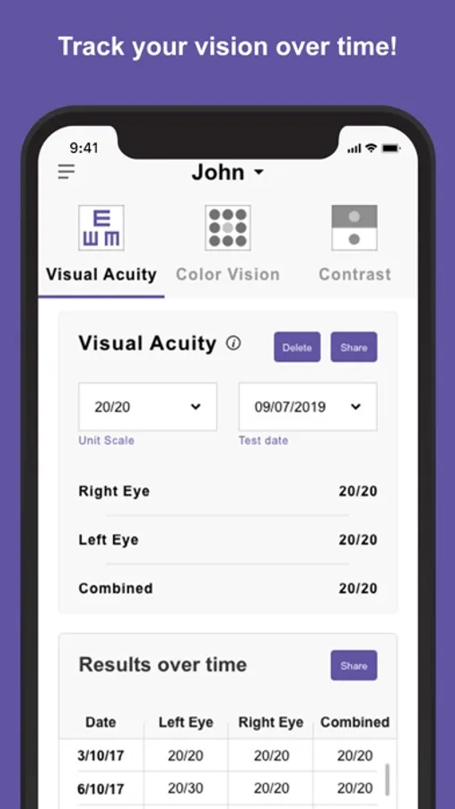 Test your vision in minutes with your smartphone and the EyeQue Insight! The EyeQue Insight is an optical device that attaches to you smartphone. Our patented technology screens distance vision from 20/20 to 20/400, color vision, and contrast sensitivity so you can stay informed of you and your family’s vision needs. No annual subscription or membership fees!