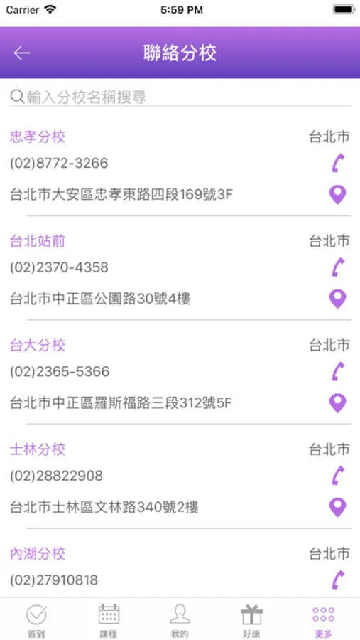 7. 聯絡分校:關鍵字快速搜尋分校,撥打電話一點通