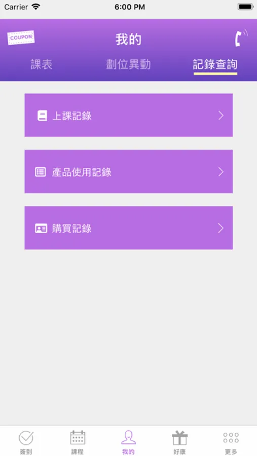 5. 記錄查詢:上課記錄/產品使用記錄/購買記錄一清二楚