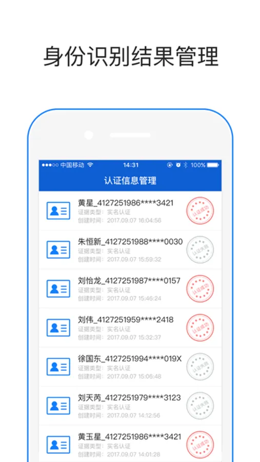 认证风险管控:对当事人身份进行本地/全网黑名单查询,遇到可疑身份即时提示并重点标识,降低业务风险。