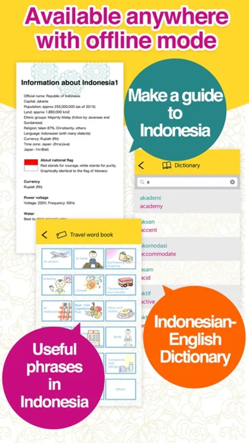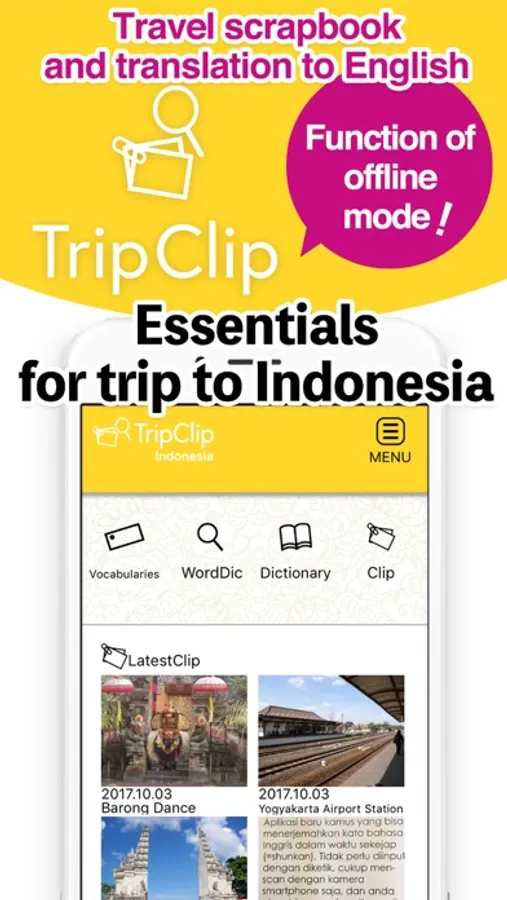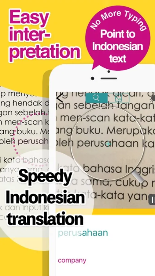 Translate by pointing camera to Indonesian text will support you during travel.No more typing!