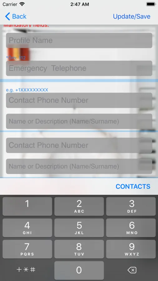 This application allows a rapid usage of data previously recorded in case of emergency. Furthermore, you can see your location on the map, as well as your address (requires cellular data or WiFi connection)