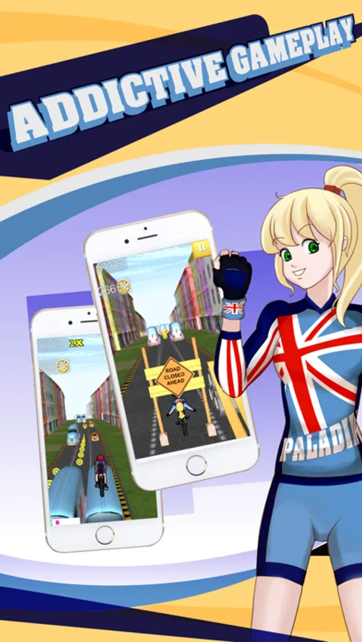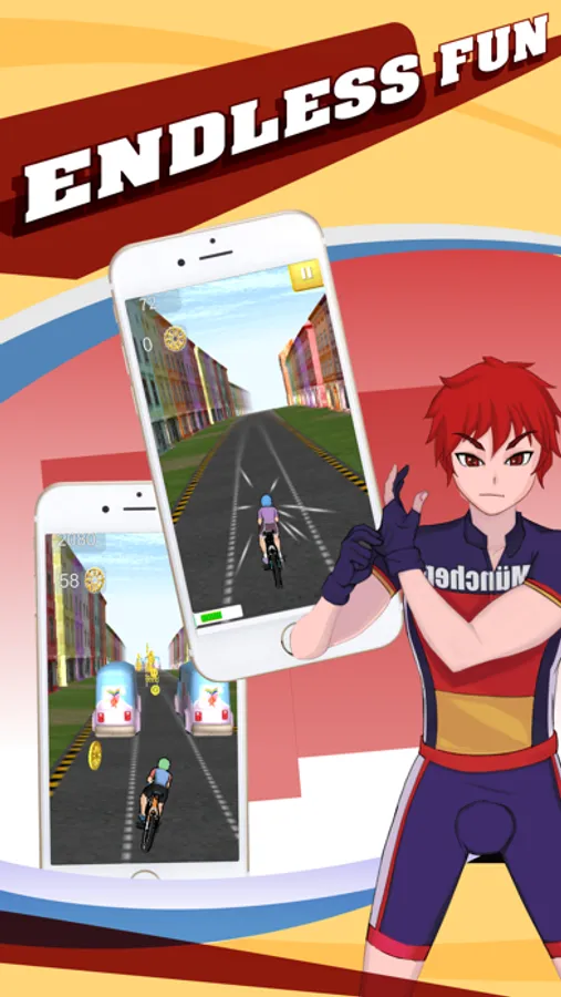 In the MOST EXCITING infinite play game yet! Choose from five stylish characters, jump on your bicycle and experience cutting edge 3D action as you ride through this adrenaline-fueled world. Enjoy the multiplayer feature and play with friends from all over the world! Execute tricks as you go to earn more points. The more you play the more you earn! Download now to start the adventure!