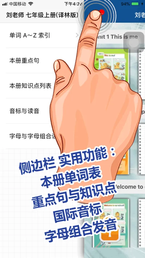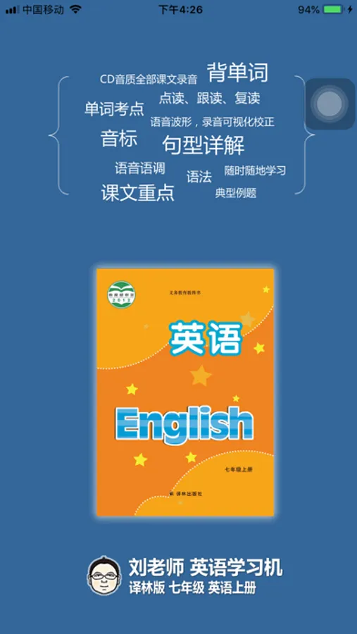 使用刘老师英语学习机在ipad和iPhone上随时随地学习七年级英语上。点读同步最新七年级英语上课本,独创语音纠正提高英语发音水平,单词拼写练写与历史纪录,高清画面仿真自然书页,专业老师讲课解答课堂遗留问题。