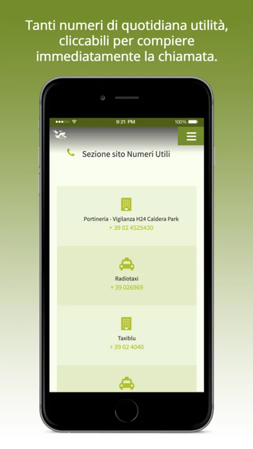 L’esclusiva App di Caldera Park è stata creata per fornire un servizio comodo e veloce che consenta all’utente di consultare tanti numeri utili, la mappa dell’area, i servizi disponibili nella struttura e di fruire di convenzioni locali e nazionali.