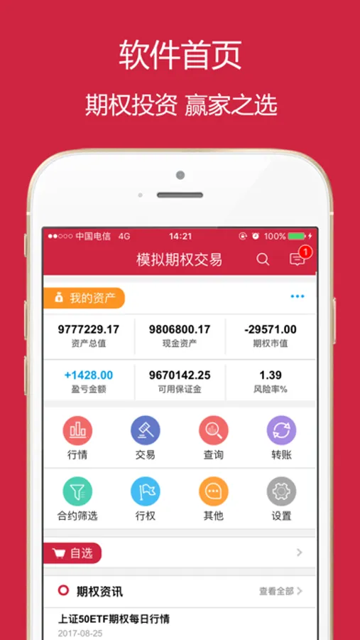 西部全真模拟期权是一款集行情、交易与投教为一体的专业股票期权APP,提供期权经典T型报价、合约筛选、合约交易、合约标的交易、持仓合约信息提醒等功能,采用行情交易互相融合的易用模式,人机交互简单、明了、便捷。适用股票期权投资者,欢迎下载使用。