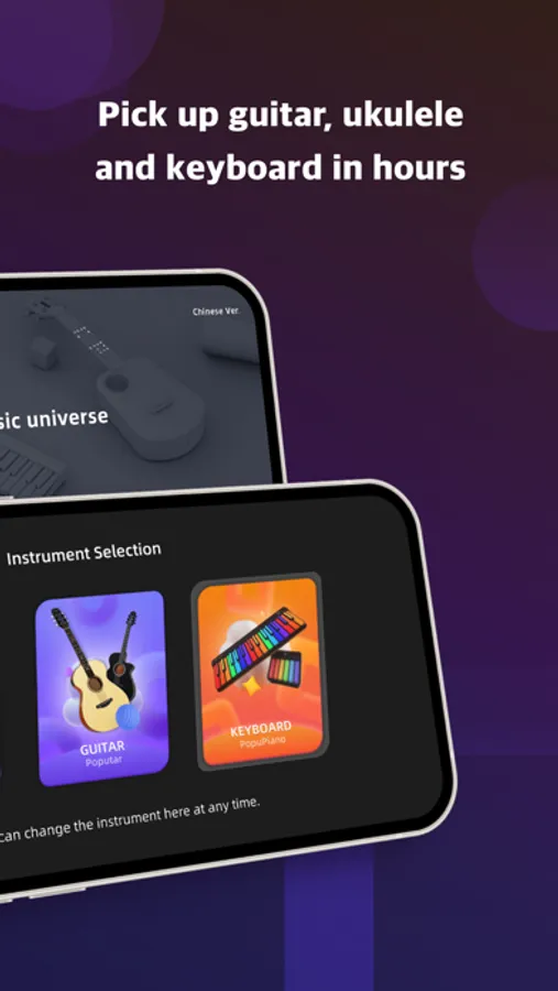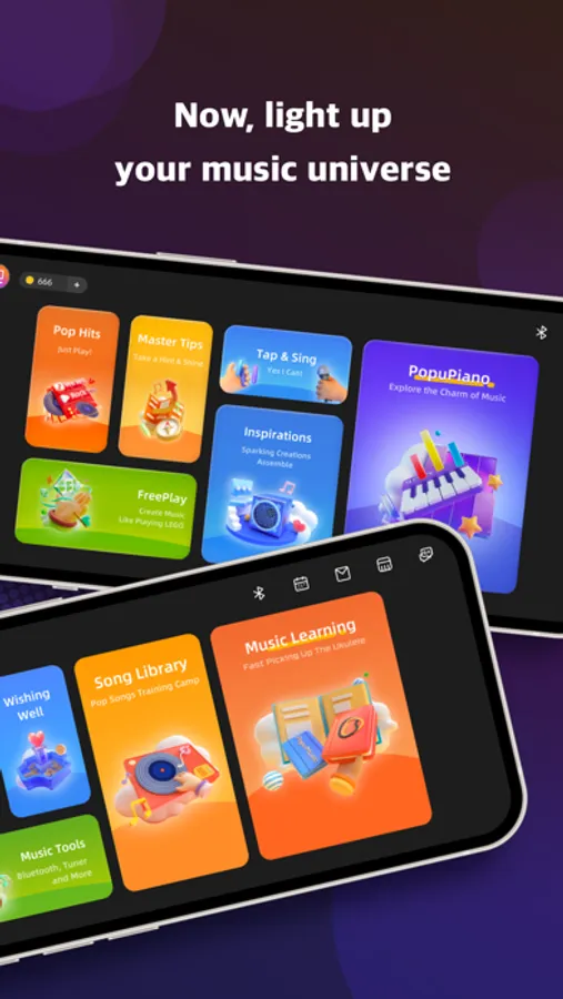 You can also switch instruments between Poputar and Populele smart ukulele, learn and play more than two music instruments with one App. We will have PopuPiano in the future.