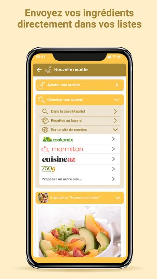 Depuis Magilist, naviguez dans vos sites de recettes préférés, sélectionnez celles qui vous plaisent, enregistrez les, et envoyer les ingrédients directement dans votre liste!