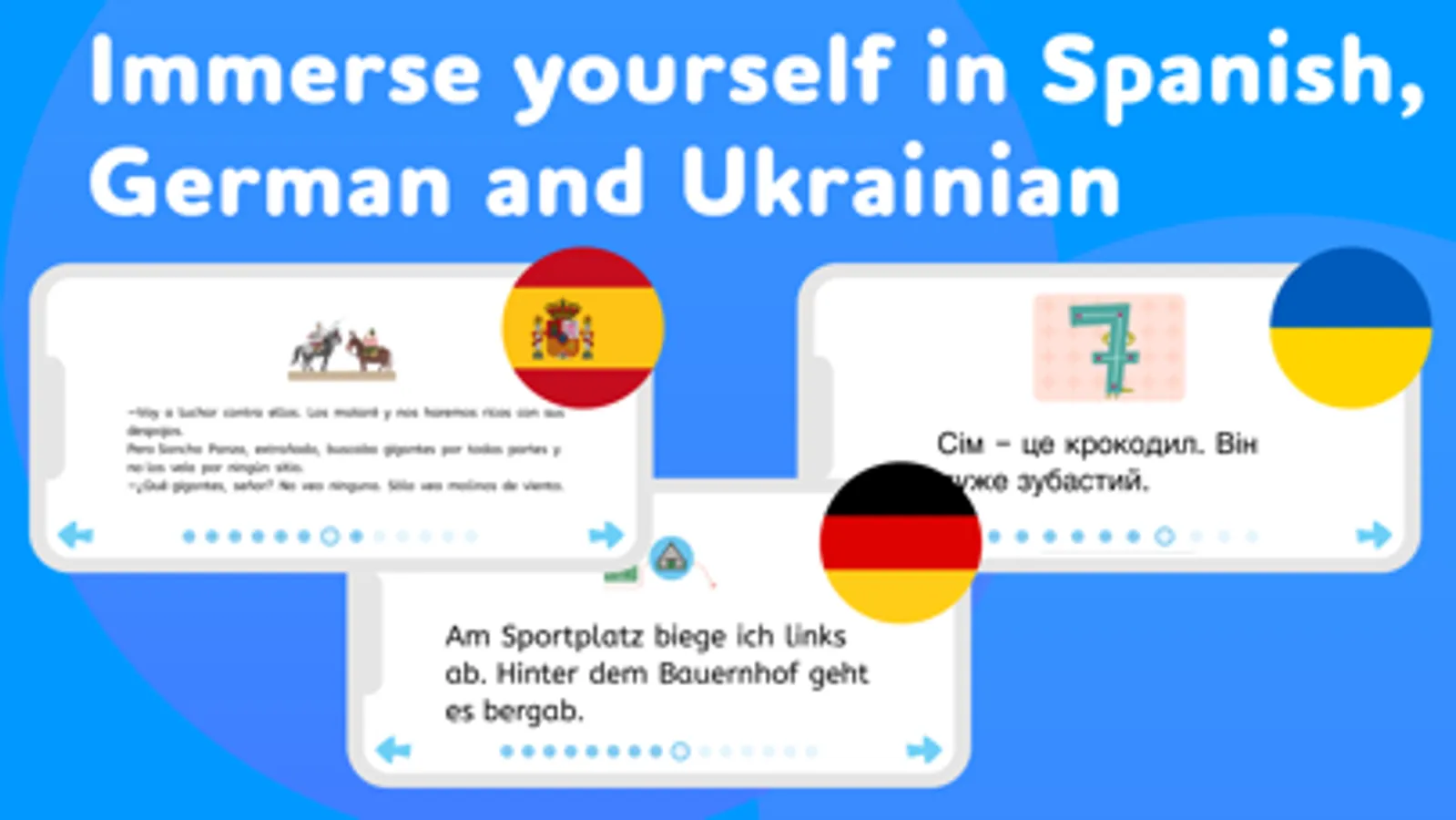 eKidz.eu offers instruction in 5 languages: Ukrainian, German, English, Spanish and Russian.