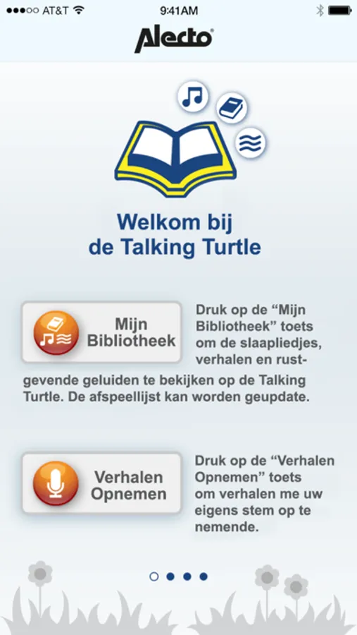 Met deze App kan contact worden gemaakt met de Alecto Talking Turtle. Het is mogelijk om liedjes, geluidjes en verhalen toe te voegen of te verwijderen uit de Alecto Talking Turtle. Eigen opgenomen verhalen via de App kunnen worden toegevoegd in de Alecto Talking Turtle. Tijdens gebruik van de Alecto Talking Turtle is verbinding met de app niet nodig.