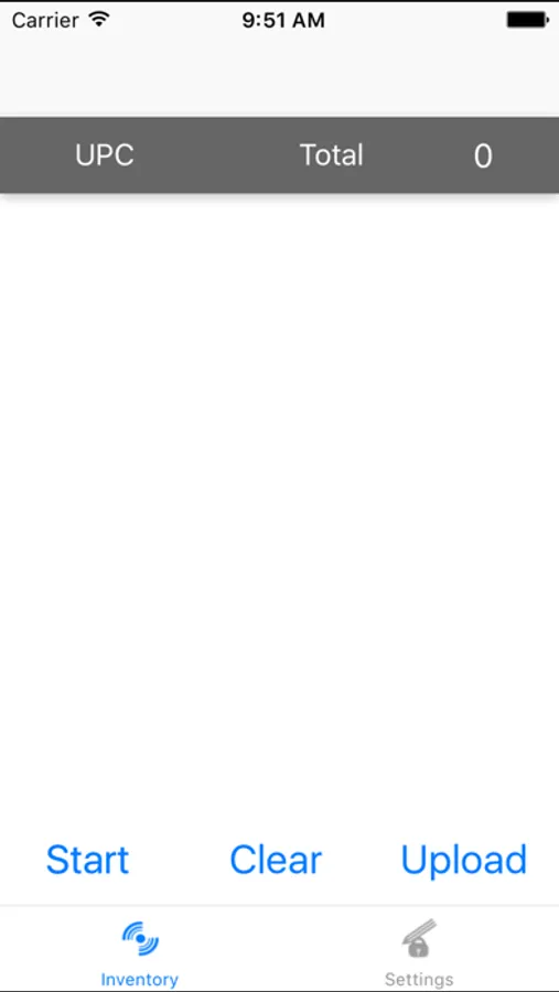 1.Inventory- A simple screen that inventories unique RFID tags. Once an inventory is complete the user then presses the upload button and a count of all unique UPCS are sent to the PortalTrack web dashboard.