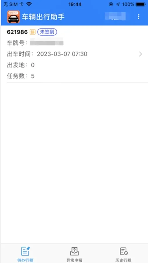 提供司机出行时可在移动端记录出行信息的功能,司机行程结束后可将行程记录的车辆行驶轨迹、出发地点、停止地点、用车时长、里程表起止照片等信息上传至系统