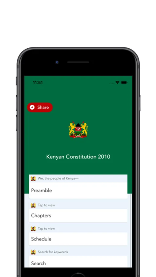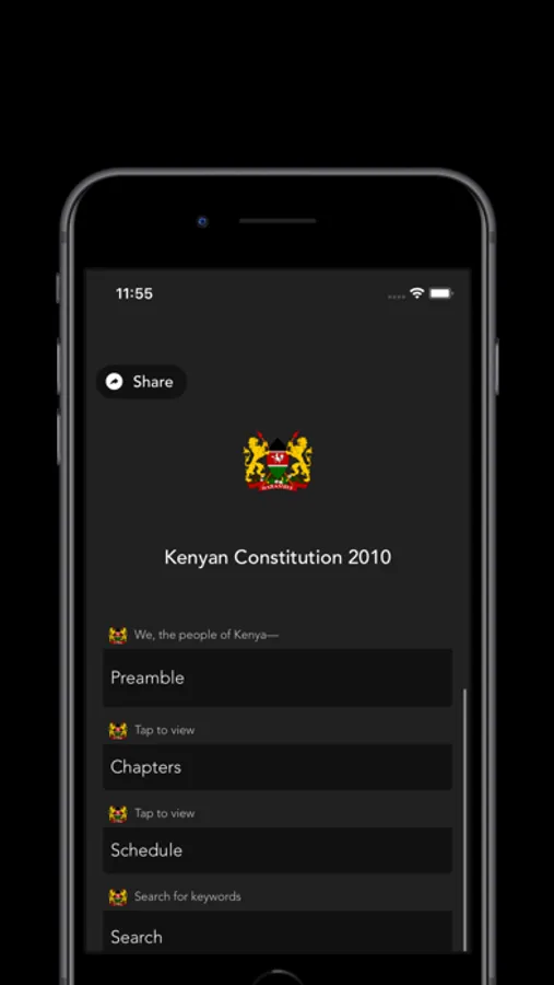 A highly accessible, easy to use app version of the Kenyan Constitution 2010