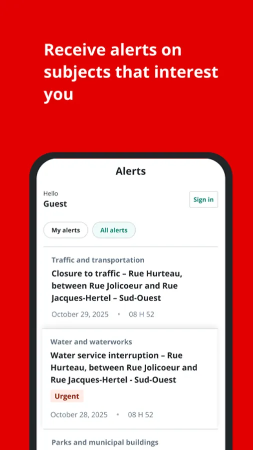 Create an account to access services and receive alerts about situations that may affect your daily life.