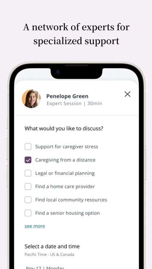 Unlimited sessions with Cleo’s network of 60+ types of experts and clinicians. From doulas, lactation consultants, career coaches, and mental health clinicians to nutritionists, development experts, elder care specialists, and more, you can turn to Cleo for the moments you need specialized support — all at no cost to you.