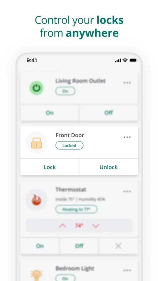 - Lock and unlock your door or adjust your thermostat from anywhere