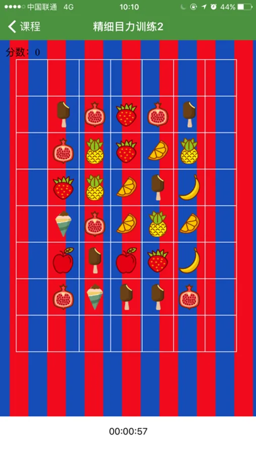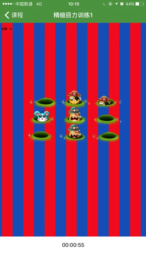 目力训练课成包含2个:打地鼠和连连看。通过黑白、红蓝或红绿背景强化视觉打扰与刺激,鼓励孩子快速、准确的击中目标,锻炼视物的清晰度和敏锐度。