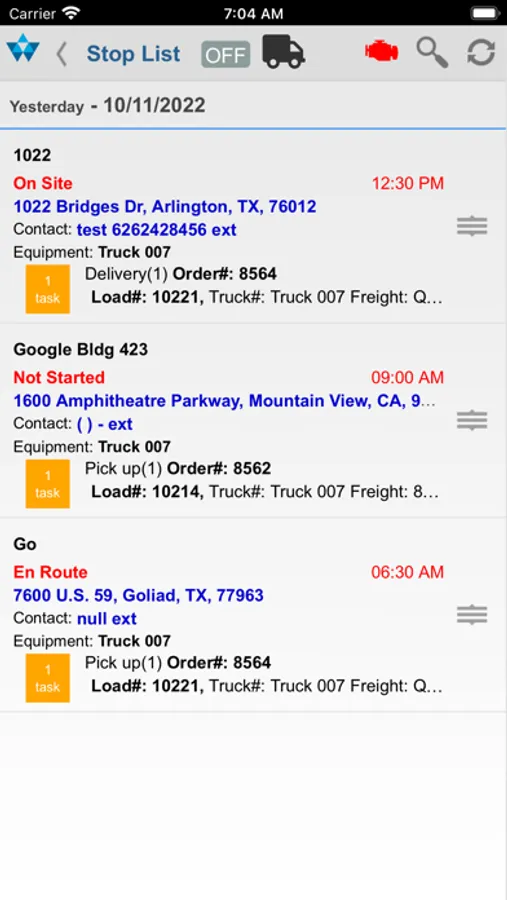+ Receive load information from dispatch like jobsite address, contact info and load details