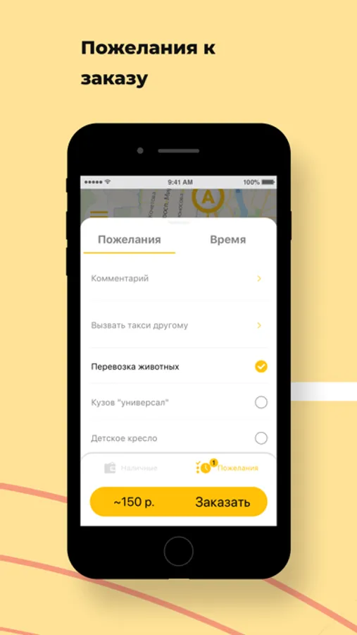 Используйте опцию “Вызвать такси другому” в разделе “Пожелания” и укажите его номер телефона. Когда такси подъедет, на указанный номер придет СМС, а вам — сообщение в приложении.