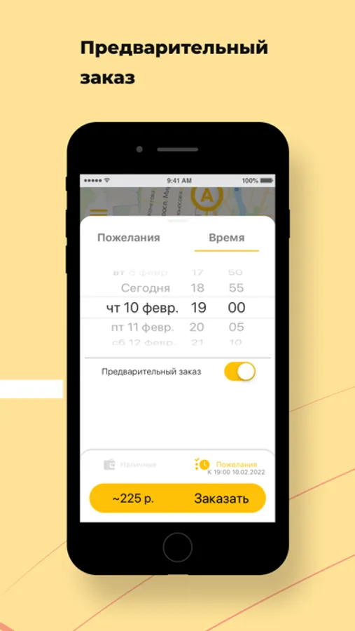 Выберите опцию “Предварительный заказ”. Поиск автомобиля начнется незадолго до заказа поездки, и автомобиль приедет к назначенному времени. Также вы будете заранее знать стоимость поездки.