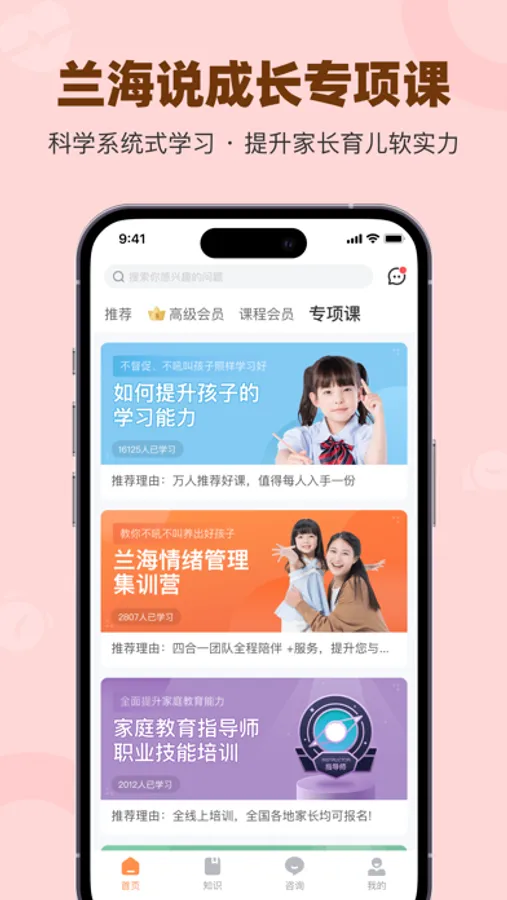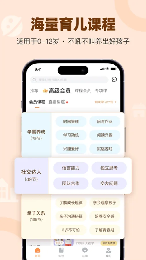 涵盖家庭教育全年龄段(0-6,6+)、全视频课程。