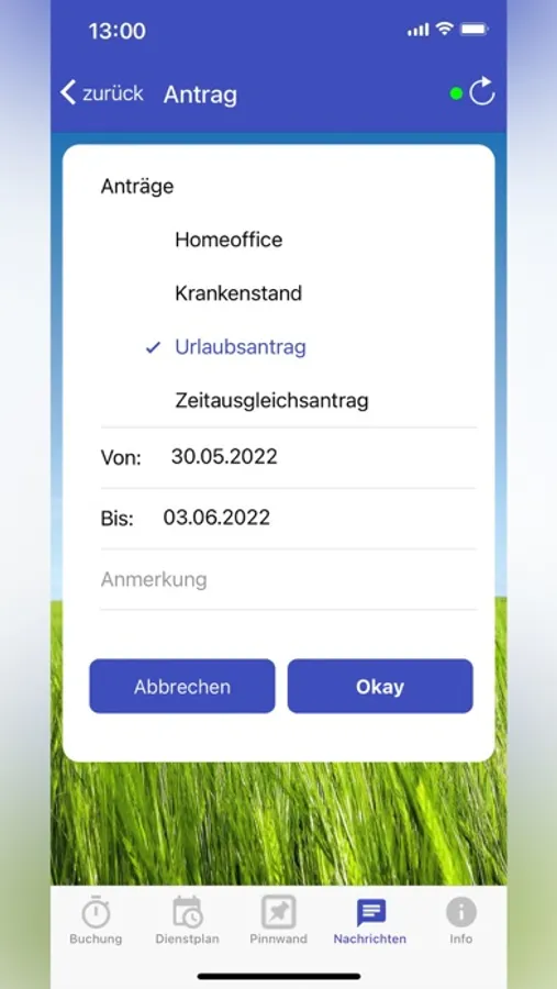 This app allows you to easily send a request for vacation or compensatory time to your personnel management using a simple formula.