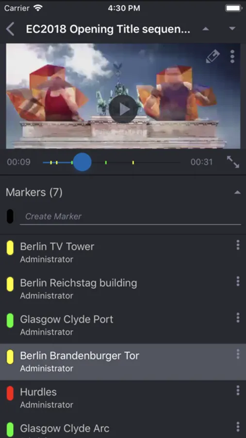 · Add markers with comments to media assets so that other users can be alerted to an important shot, or be reminded of the location of the quote that defines the story