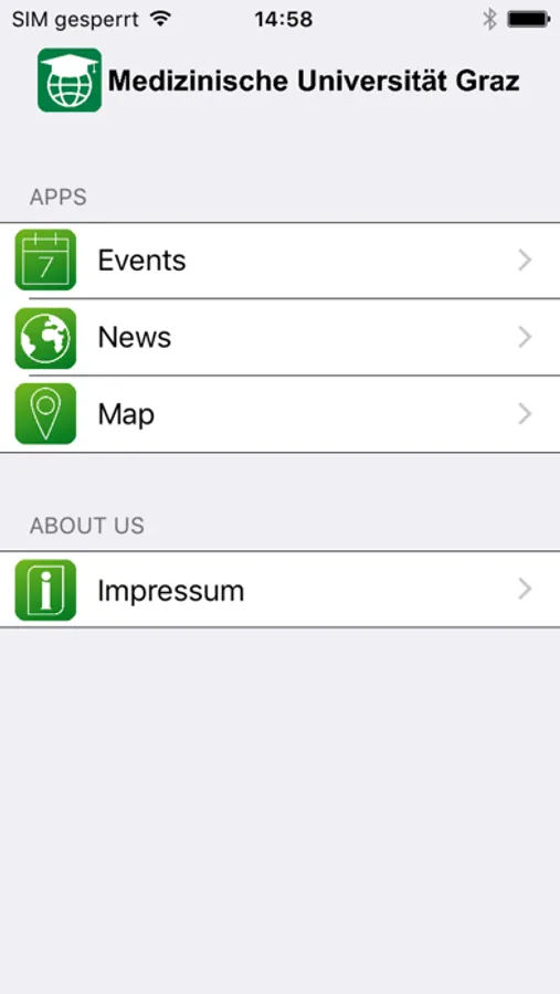 Mit den drei Bereichen Map, News und Events schafft die Med Uni Graz-App einen schnellen Überblick über wichtige Geschehnisse und Infos rund um deine Universität.