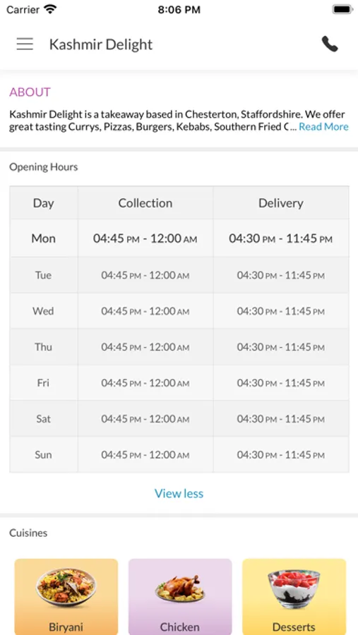 You can now order online, all your favourite dishes and many more delicious options, and have them delivered straight to your door in no time at all.Here at Kashmir Delight we are constantly striving to improve our service and quality in order to give our customers the very best experience. As a result, we are finally proud to unveil and introduce our latest improvement, our new online ordering app!