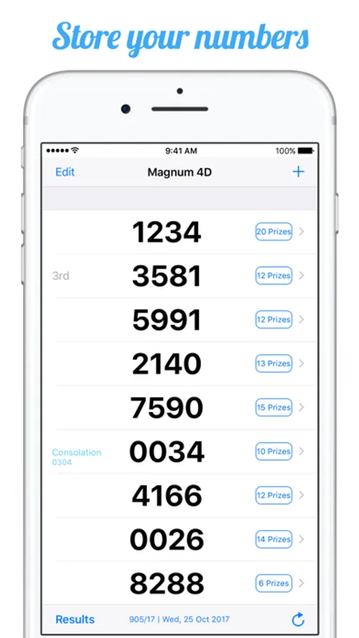 - Check the latest and past results by swiping left or right on your iOS device.