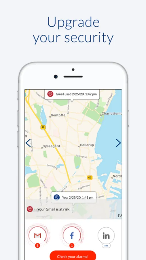 Immediately receive a notification if your Gmail, Facebook or LinkedIn accounts are being used from somewhere that is not your current location. If you are at work and someone reads your mail at home we can warn you.