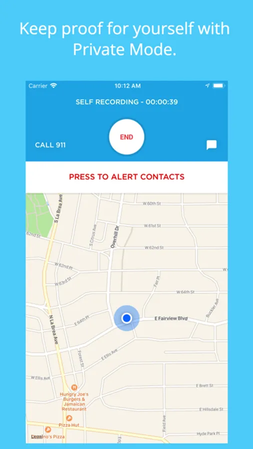 Anytime you leave a building, Press the Start Button to self-record your location and audio; even put a note in on where you’re going next.nnDuring your trip, if you feel uncomfortable, Alert your Friends/Family/Colleagues to help you with the push of a button.