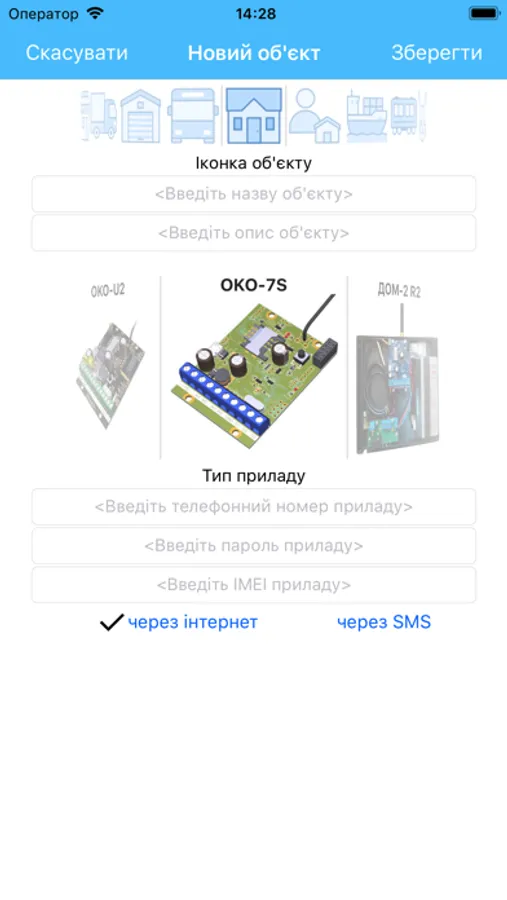 1) керування через sms або інтернет: ОКО-PRO/U2/7S/S2/ДОМОВИЙ-8C/ДОМ-3/ДОМ-2 R2