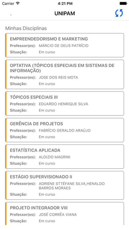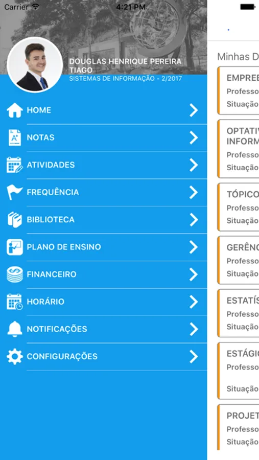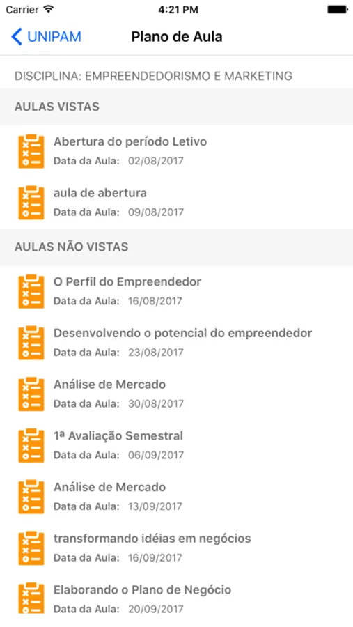 O aplicativo permite que os alunos do Centro Universitário de Patos de Minas – UNIPAM acessem o plano de ensino, plano de aula, notas, atividades, frequência, materiais, financeiro, biblioteca e horário.