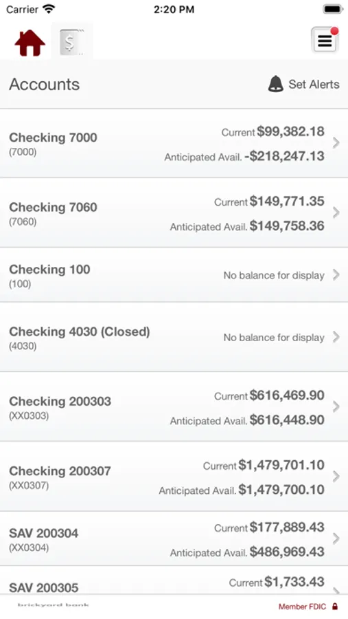 • See current account balances