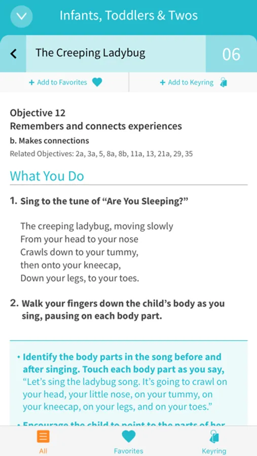 Making the most of every minute with young children has never been easier or more fun! Mighty Minutes® describes short, playful activities that engage young children and support their development in all areas anytime, anywhere. Each interactive rhyme, song and game focuses on an objective for development and learning found in The Creative Curriculum®. You’ll find everything you love about Mighty Minutes® conveniently on your mobile device. That means easy, on-the-go access to all of your favorite cards in one location. With a wide variety of activities to choose from, you’ll never be at a loss to fill those “in-between” moments with warm interactions and meaningful learning.