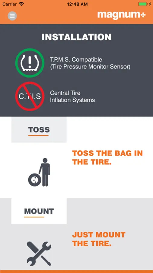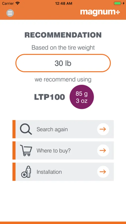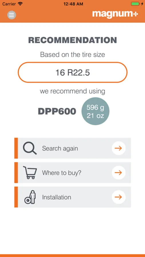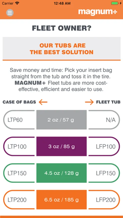 Magnum+ tire balancing compound mobile sizing tool provides an easy way to determine the correct application of Magnum+ to use for your tires. Simply enter in your tire's weight or size to get the right balancing solution for your vehicle.