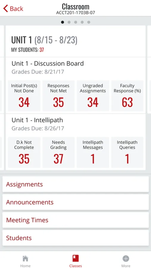 - Dashboard views of assignments, including number of submissions, missing assignments, and if there is work which needs grading in an intellipath™ assignment.
