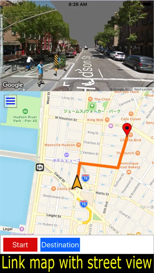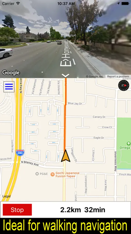 his app links together the map and street views and allows users to check the actual appearance of the course they're on, making for a perfect walking app.