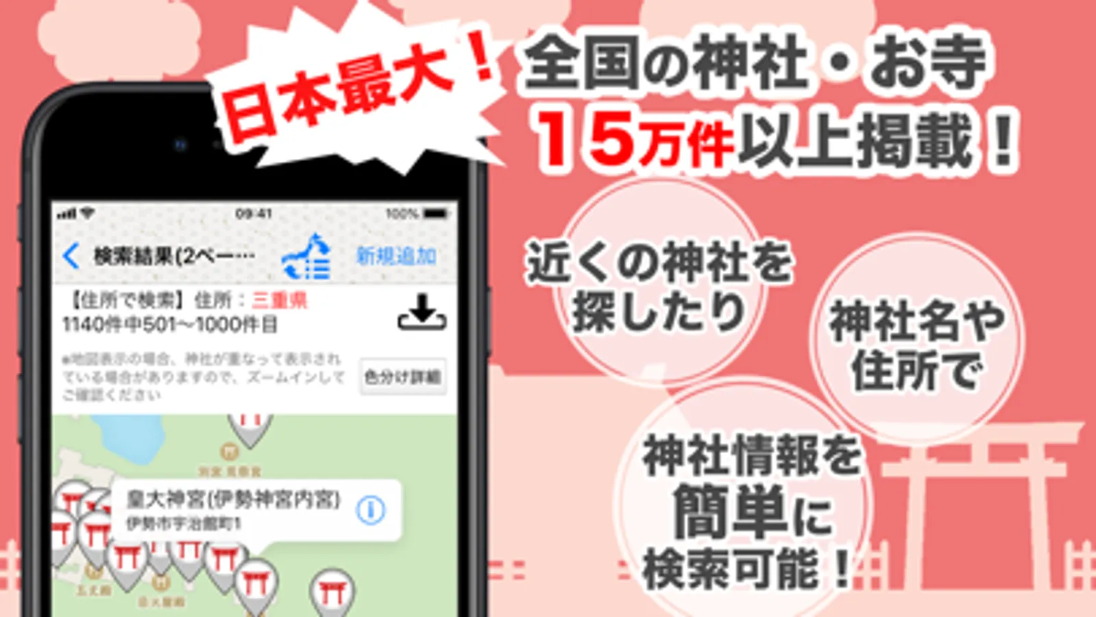 日本最大!15万件以上の神社・お寺情報を収録し、このアプリひとつで神社のことが何でもわかる!!