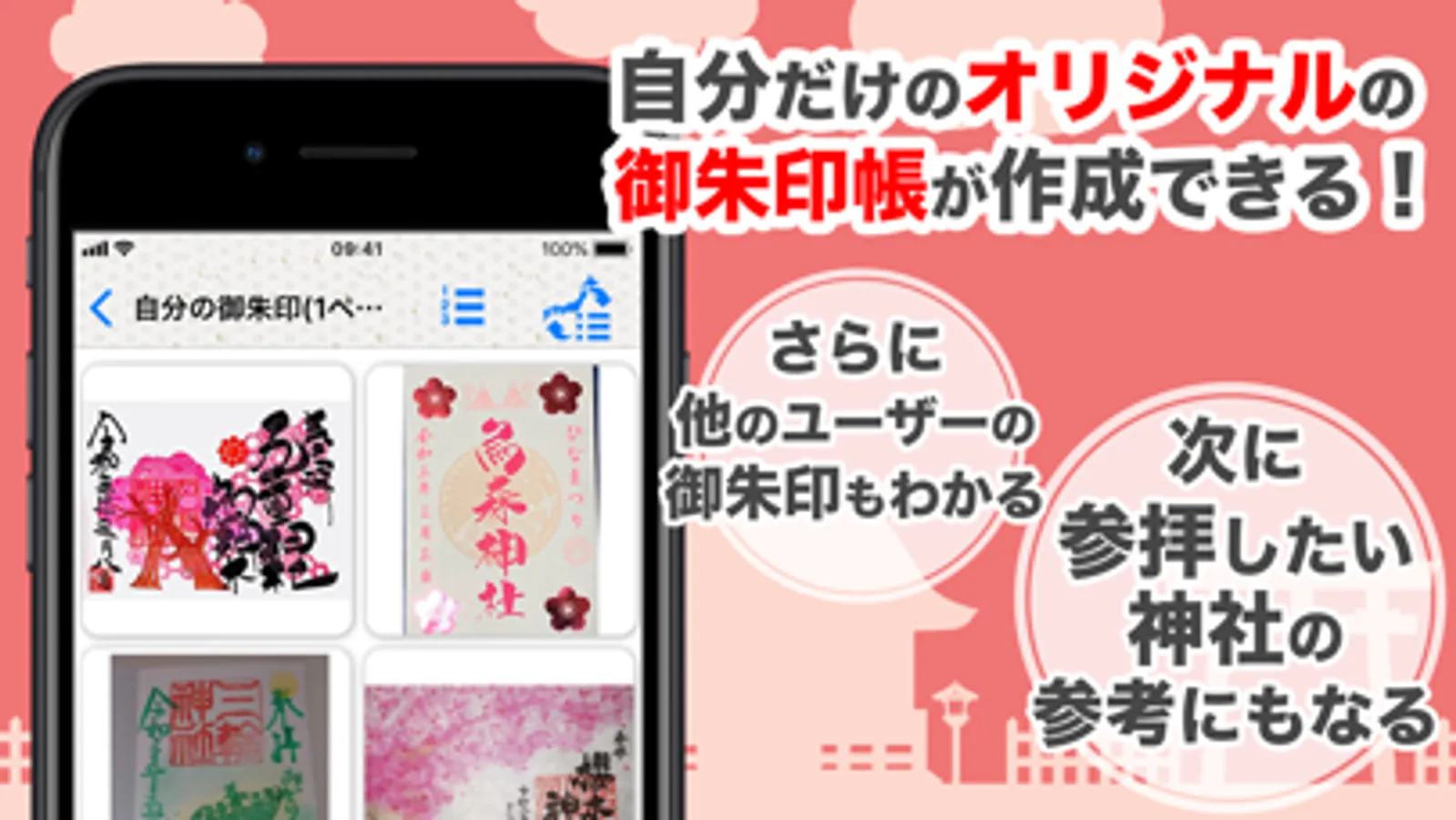 ・「御朱印帳」には、参拝した神社で頂いた御朱印を写真で記録することができます。