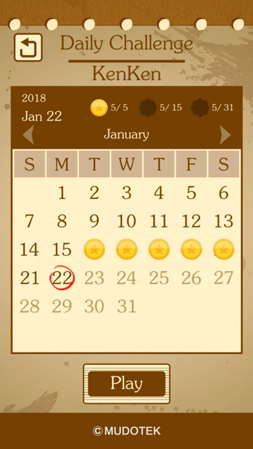 5. Daily Challenge: a puzzle every day, growing from novice to expert in a gradual process.