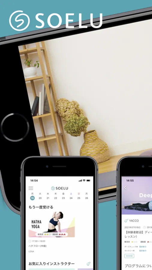 SOELU(ソエル)は、お持ちのスマートフォンやPC・タブレットからインストラクターと双方向性のあるライブレッスンをメインにヨガやピラティス、トレーニングプログラムを受講できるオンラインサービスです。累計受講回数は100万回を突破し、日本最大級となっています。