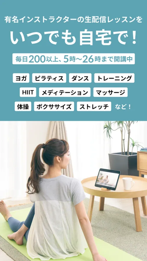 毎日朝5時〜深夜26時まで1日約200クラス以上開講しており、レッスンの種類は100以上をご用意。インストラクター以外に自分の姿が見られない自社システムを使用しているため、プライバシーが守られた環境で安心してご受講いただけます。