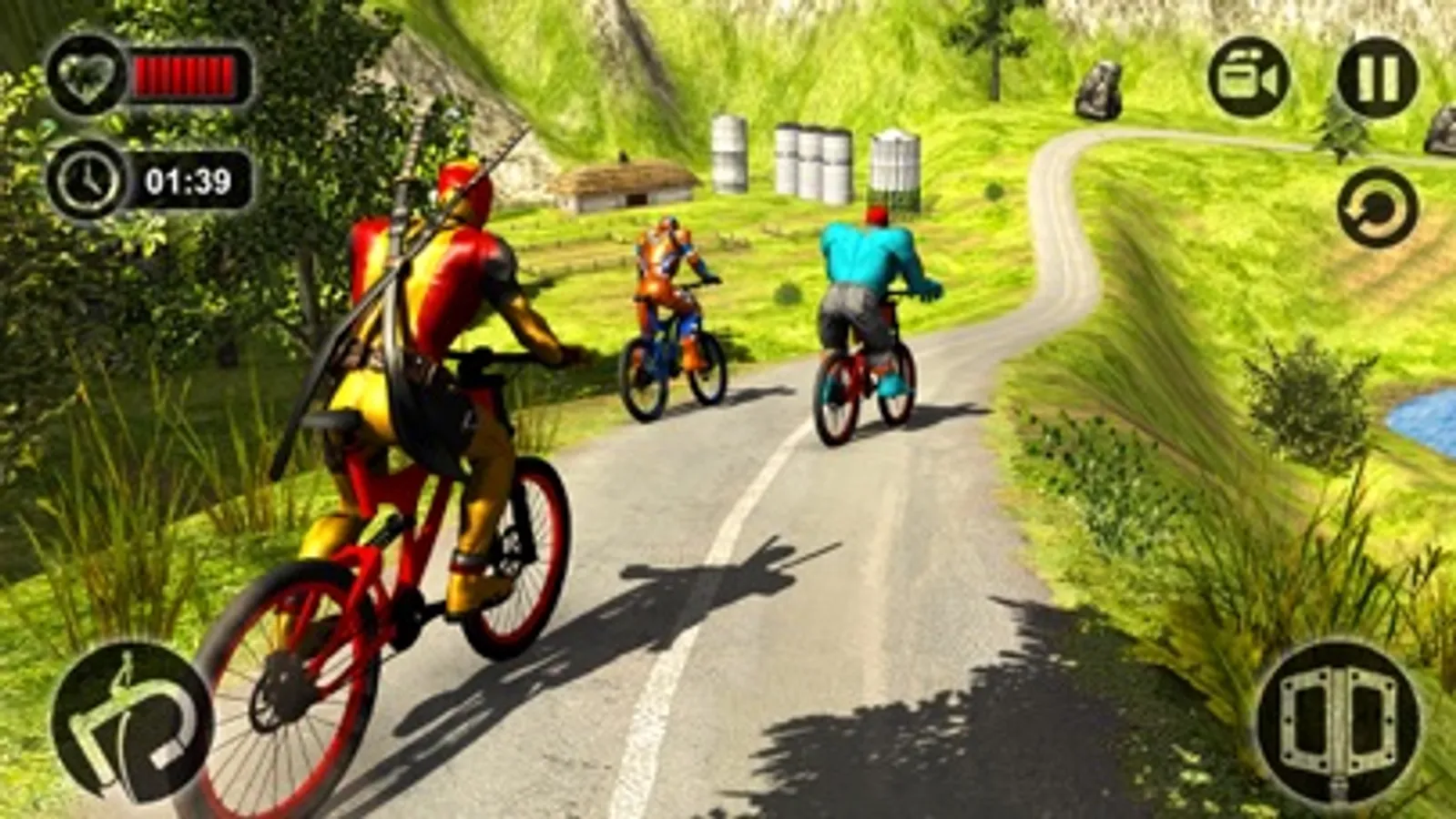 As a superhero bicycle rider get ready for race fun with other superheroes on adventurous off road hill tracks. This superhero bike racing game offers real times stunts, crash, obstacles and off road racing experience by climbing hills and dangerous mountain tracks. Compete the monster hero on happy wheels by riding bicycle as spider hero on mountain and hills.