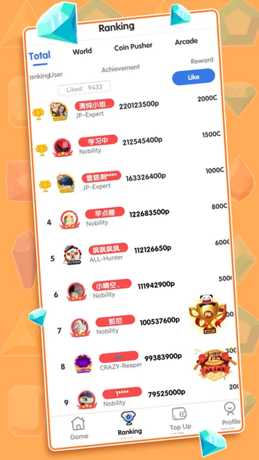 ●Social function. Chatting with people in the coin pusher machine, join the coin pusher group and making friends!