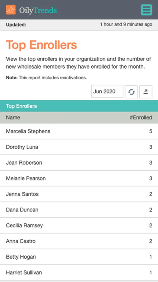 - Top Enrollers - Members who have enrolled 1 or more people