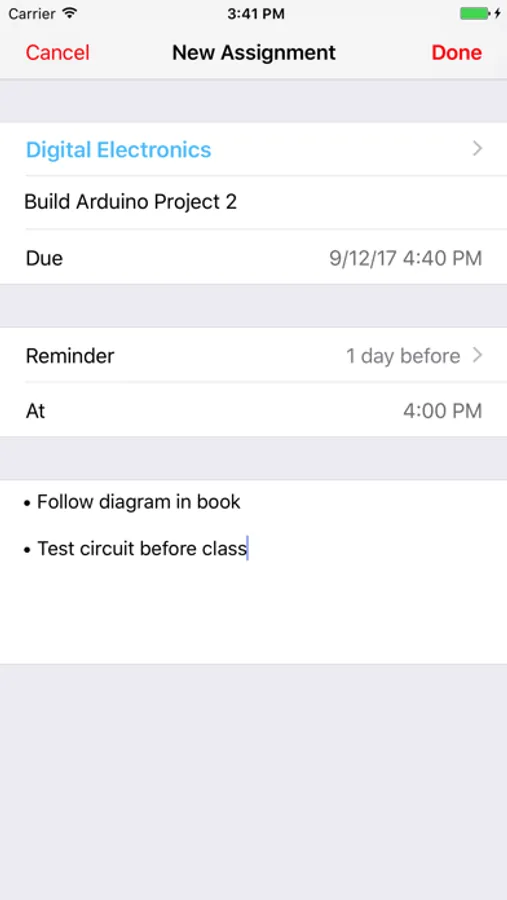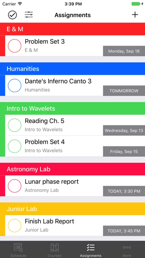 • Configurable assignment reminders so you don't let any assignments slip by.