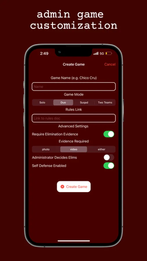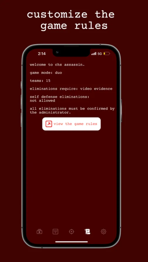 asssassin is a game to play with friends. Make a game with your own rules, get your target, and play! Race to be the last one standing by not getting eliminated!