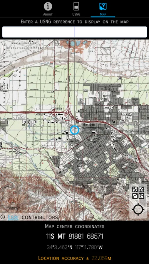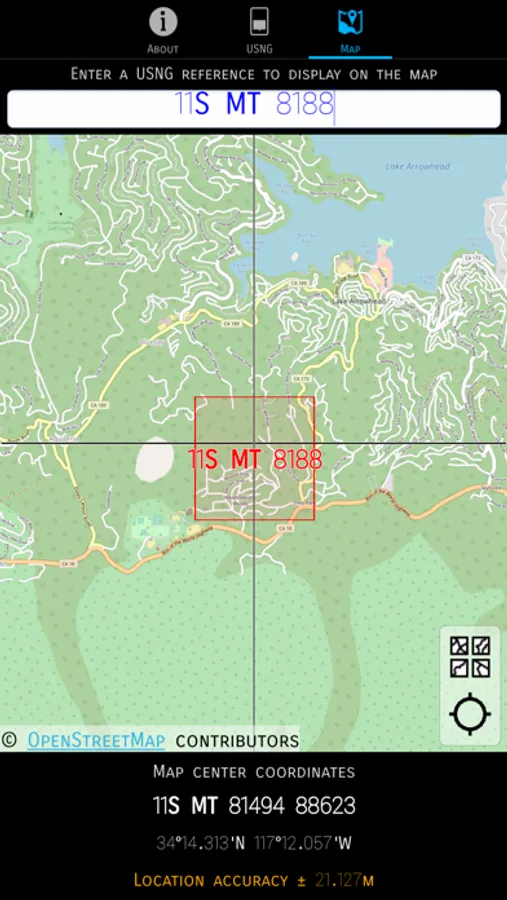 MyUSNG also includes a simple map that will let you capture the USNG of locations away from you, or center the map